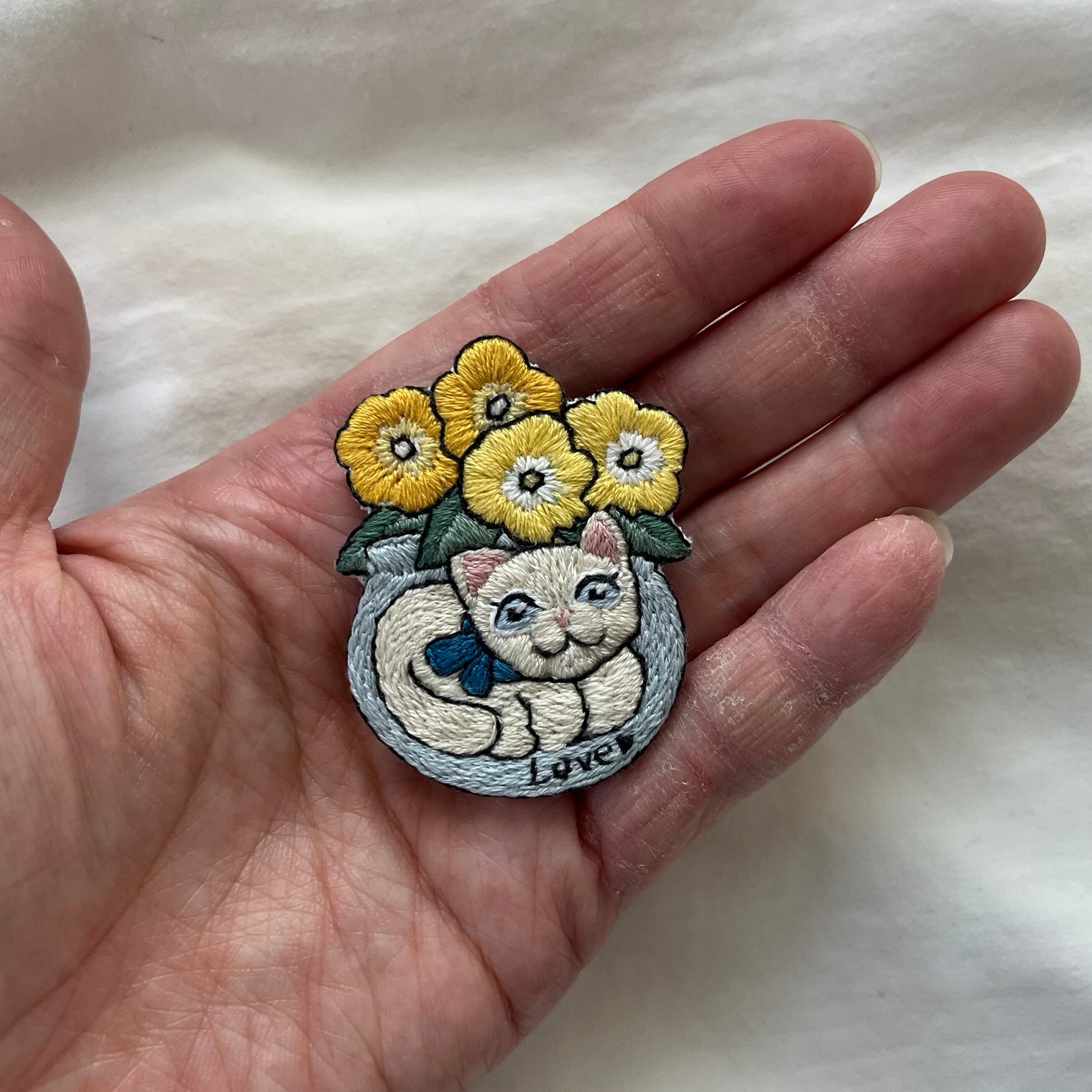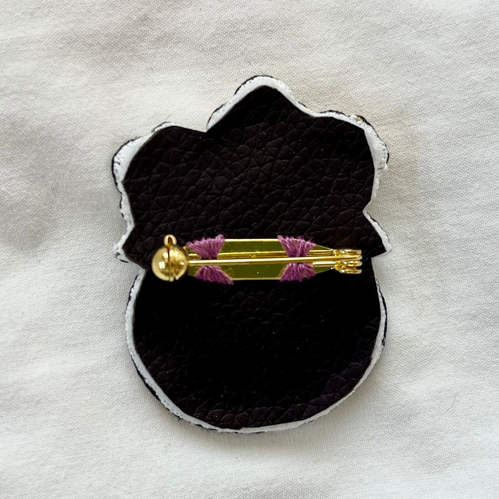素材⋯COSMO刺繍糸、25mmブローチピン、裏面は接着芯とフェイクレザー生地を使用しています。