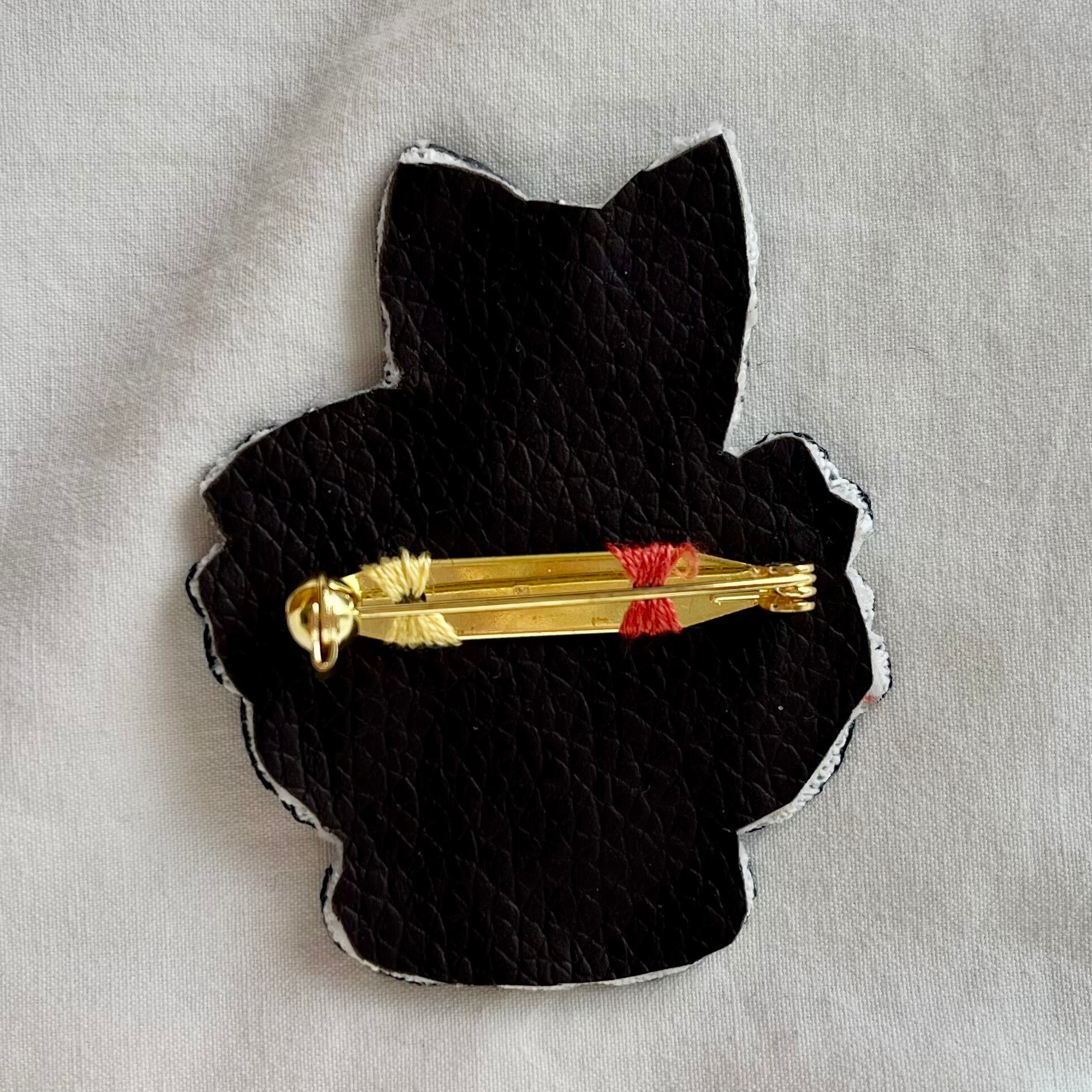 素材⋯COSMO刺繍糸、30mmブローチピン、裏面には接着芯とフェイクレザー生地を使用しております。