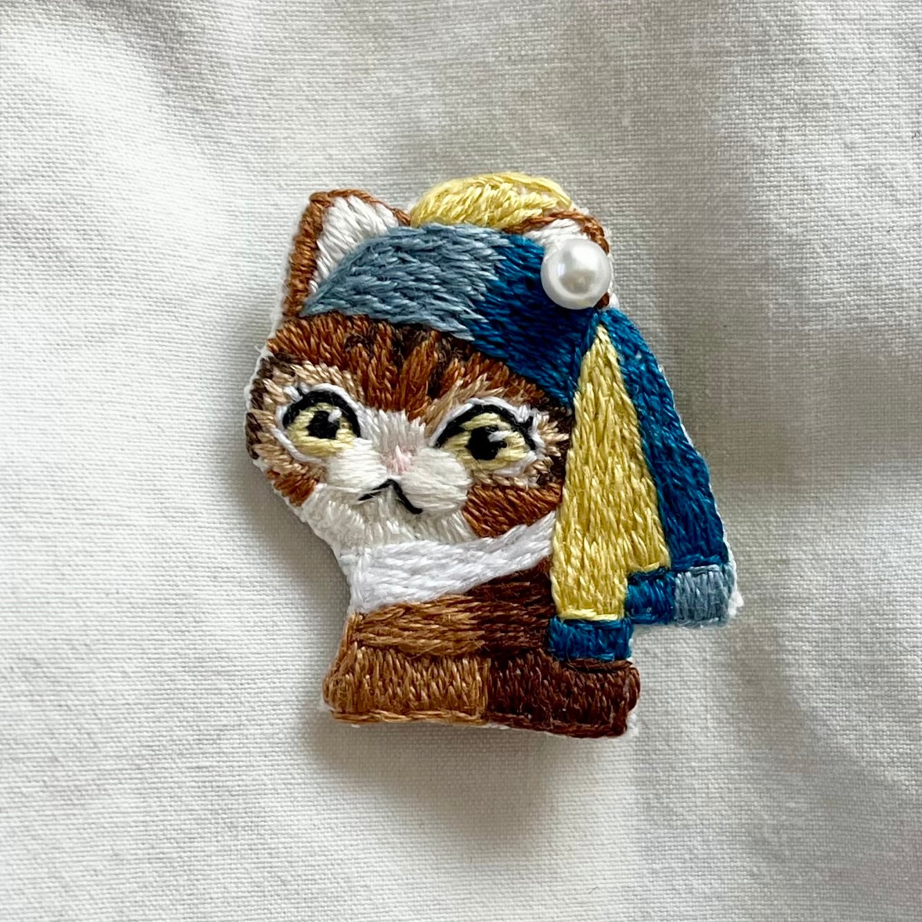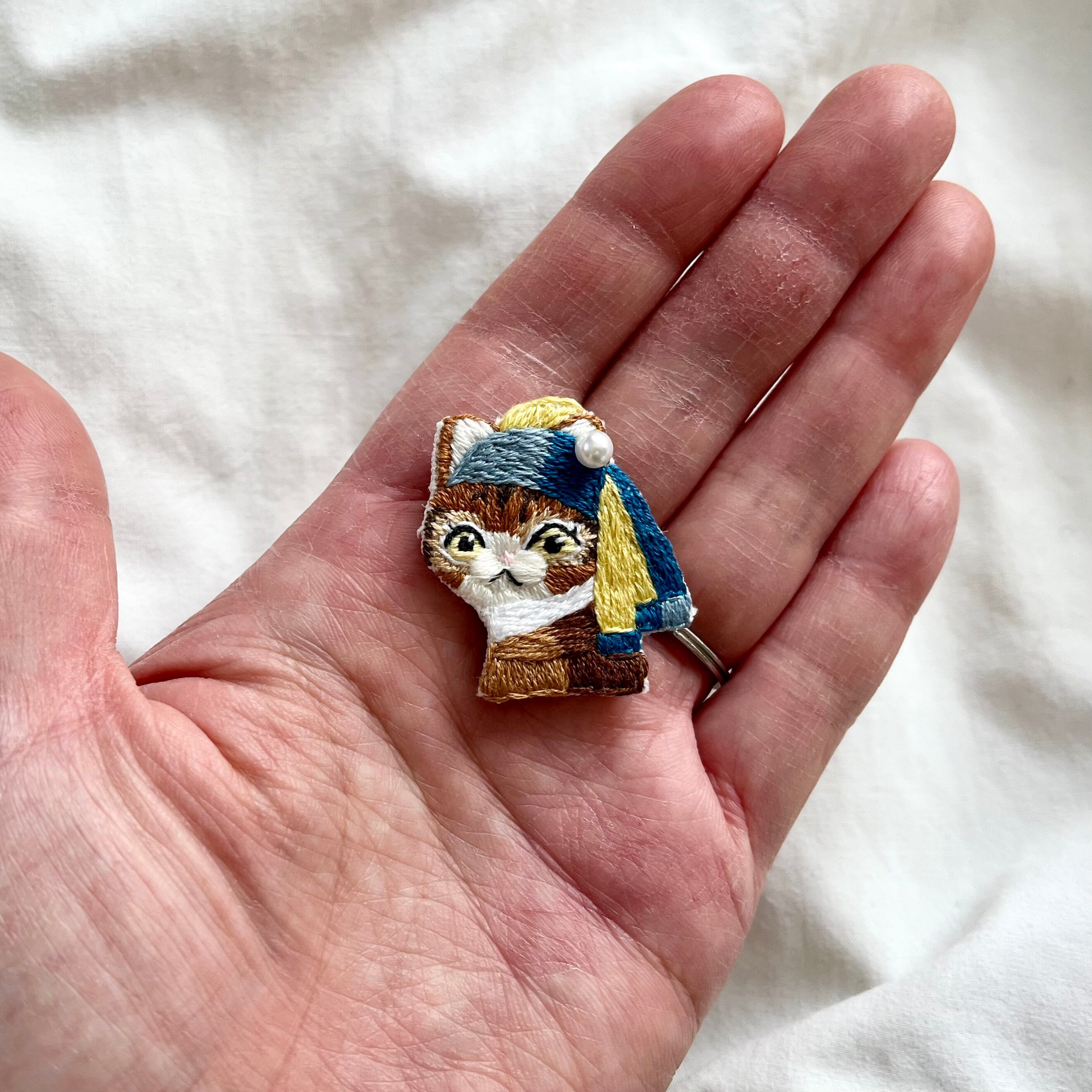 \真珠の耳飾りのニャンコ手刺繍ブローチシリーズ/