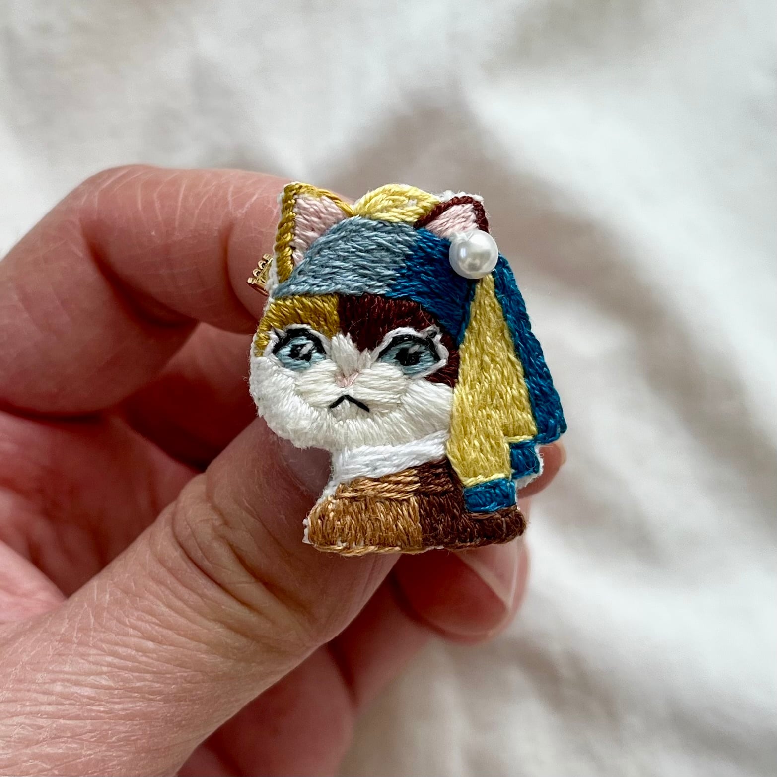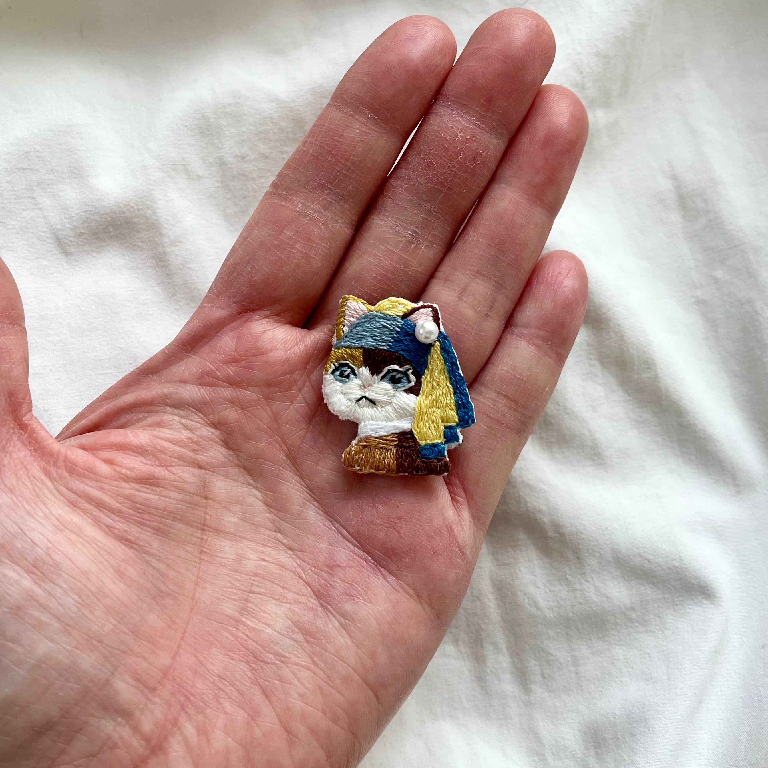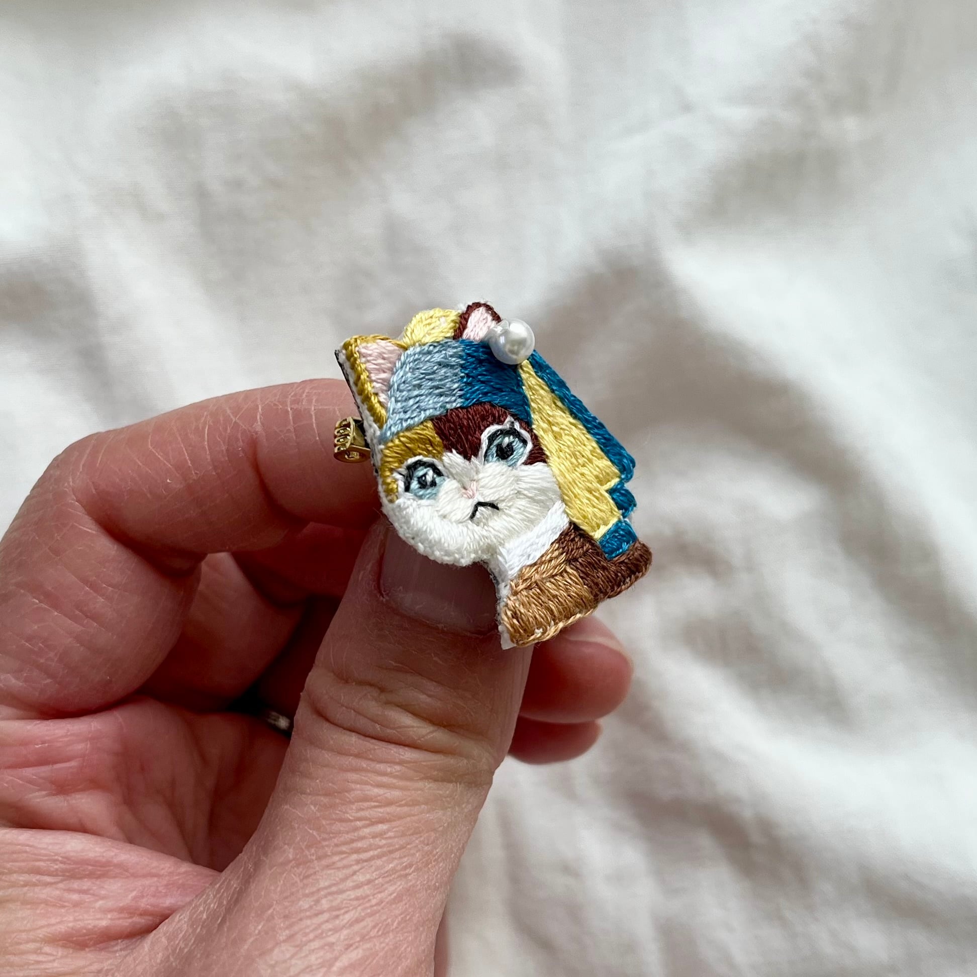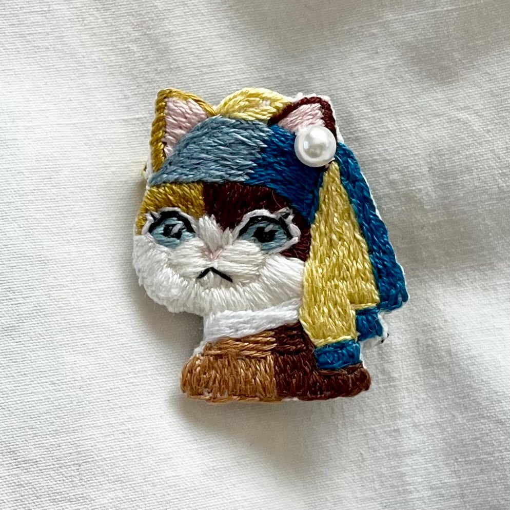 \真珠の耳飾りのニャンコ手刺繍ブローチシリーズ/