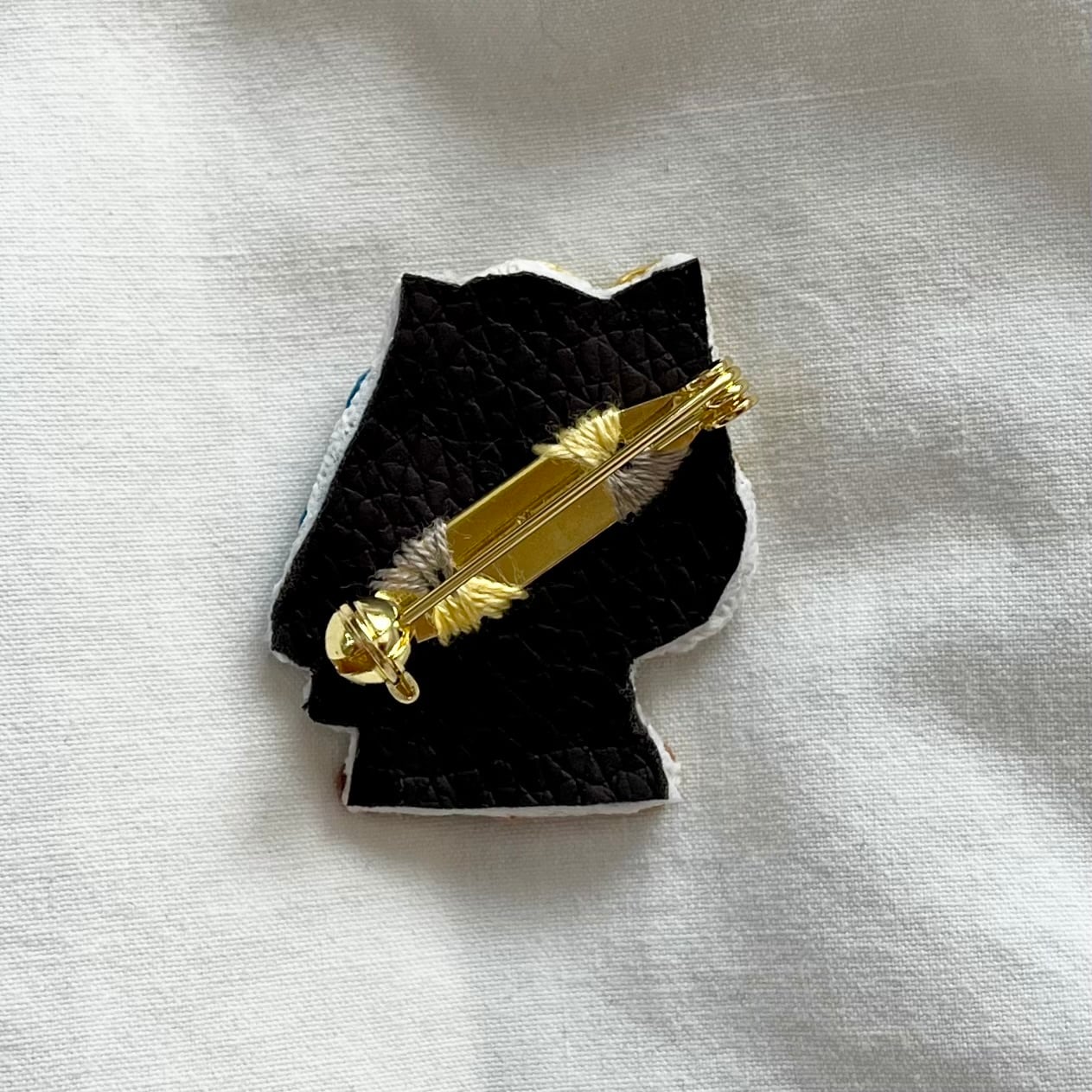 素材⋯COSMO刺繍糸、20mmブローチピン、裏面は接着芯とフェイクレザー生地を重ねています。