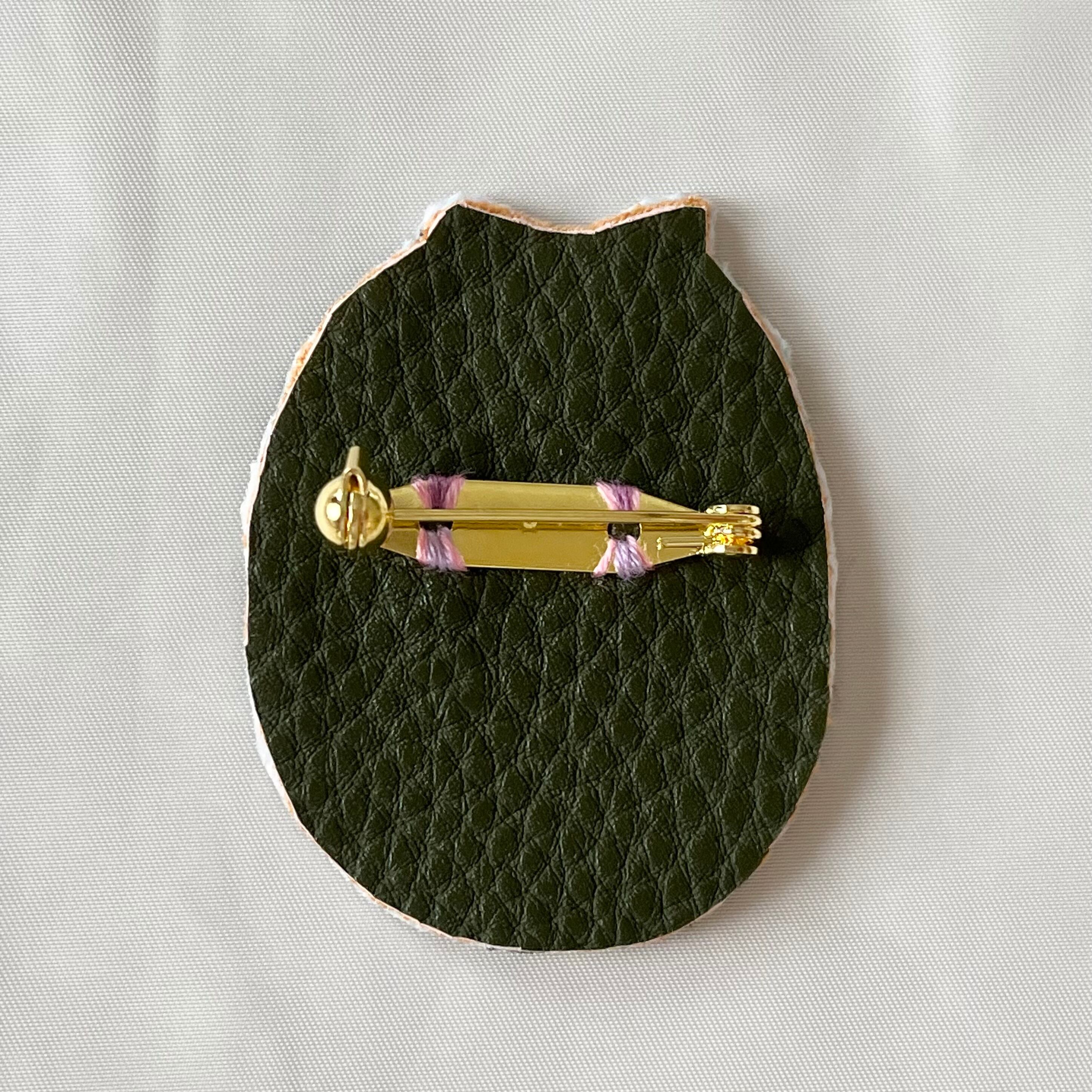 素材⋯COSMO刺繍糸、30mmブローチピン、裏面は接着芯とフェイクレザー生地を重ねています。