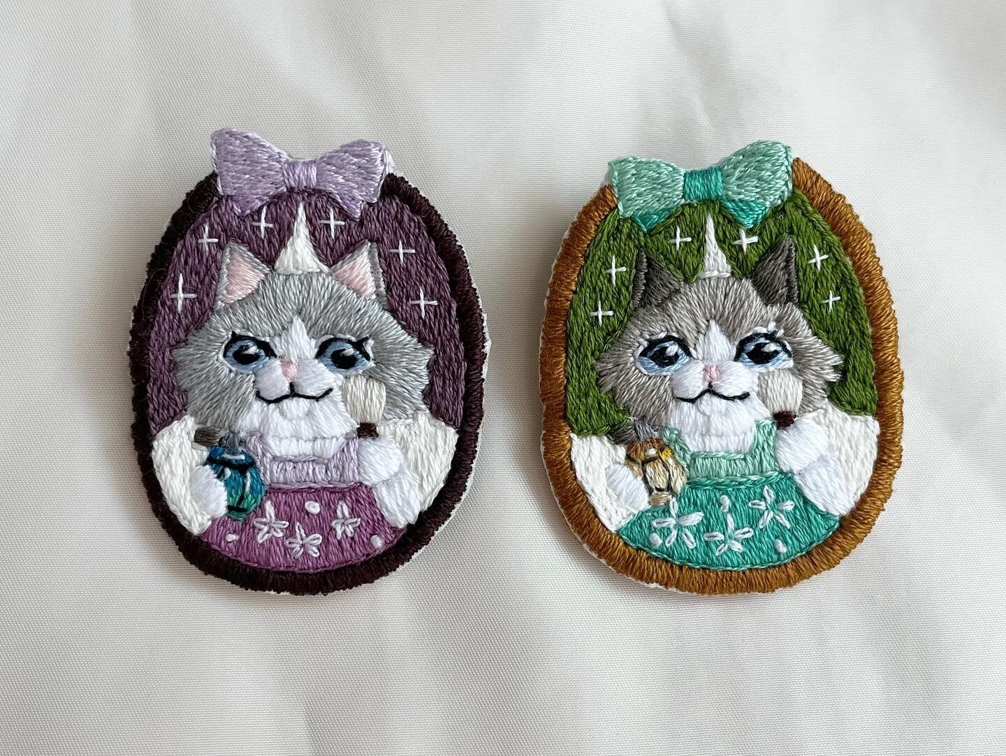 \身支度猫ちゃん手刺繍ブローチシリーズ/