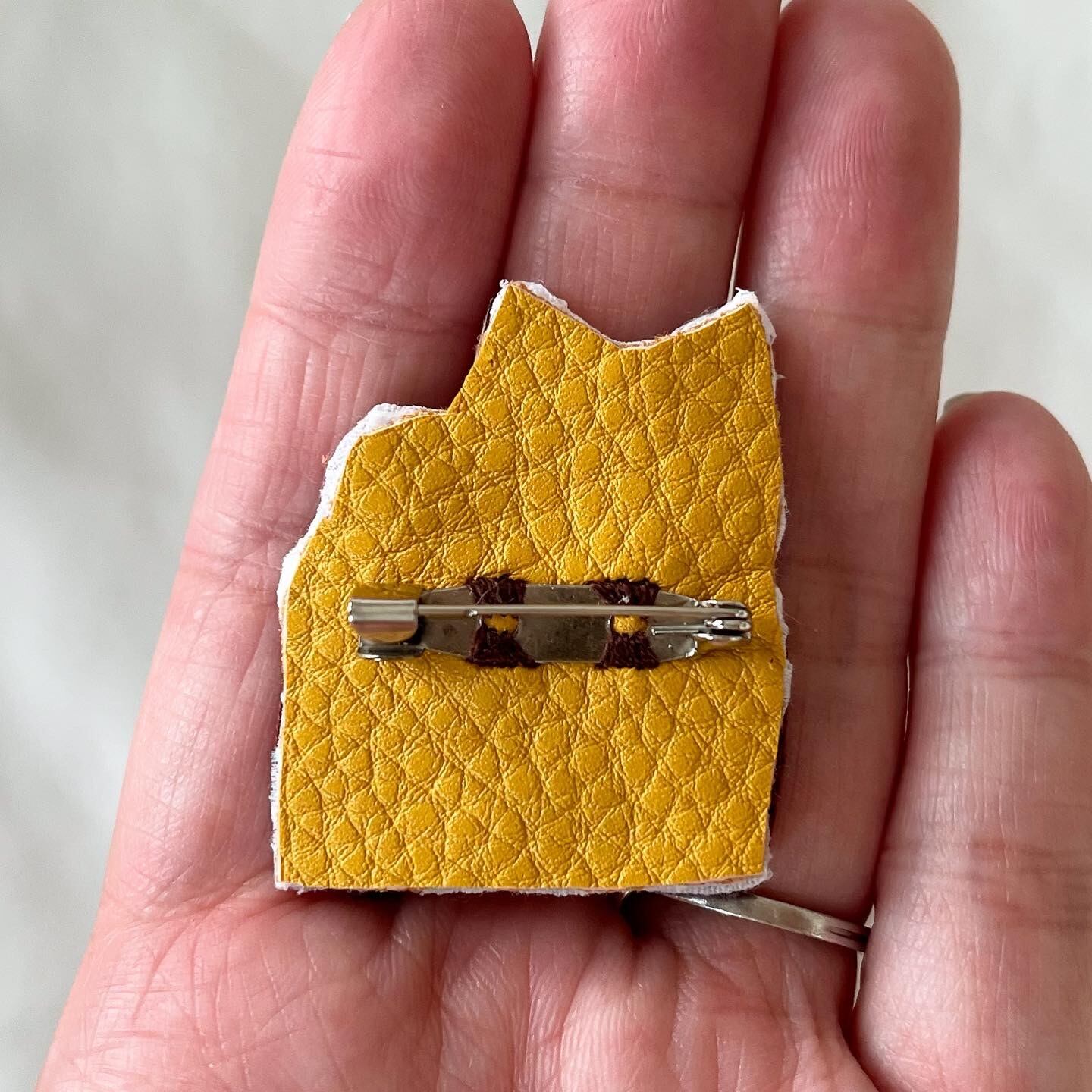 素材⋯COSMO刺繍糸、25mmブローチピン、裏面は接着芯とフェイクレザー生地を重ねています。
