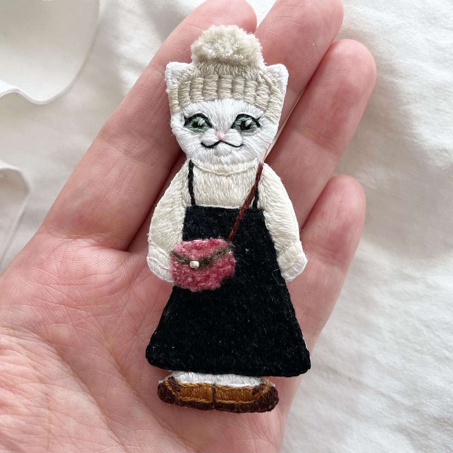 \オシャレコーデ猫ちゃん手刺繍ブローチシリーズ/