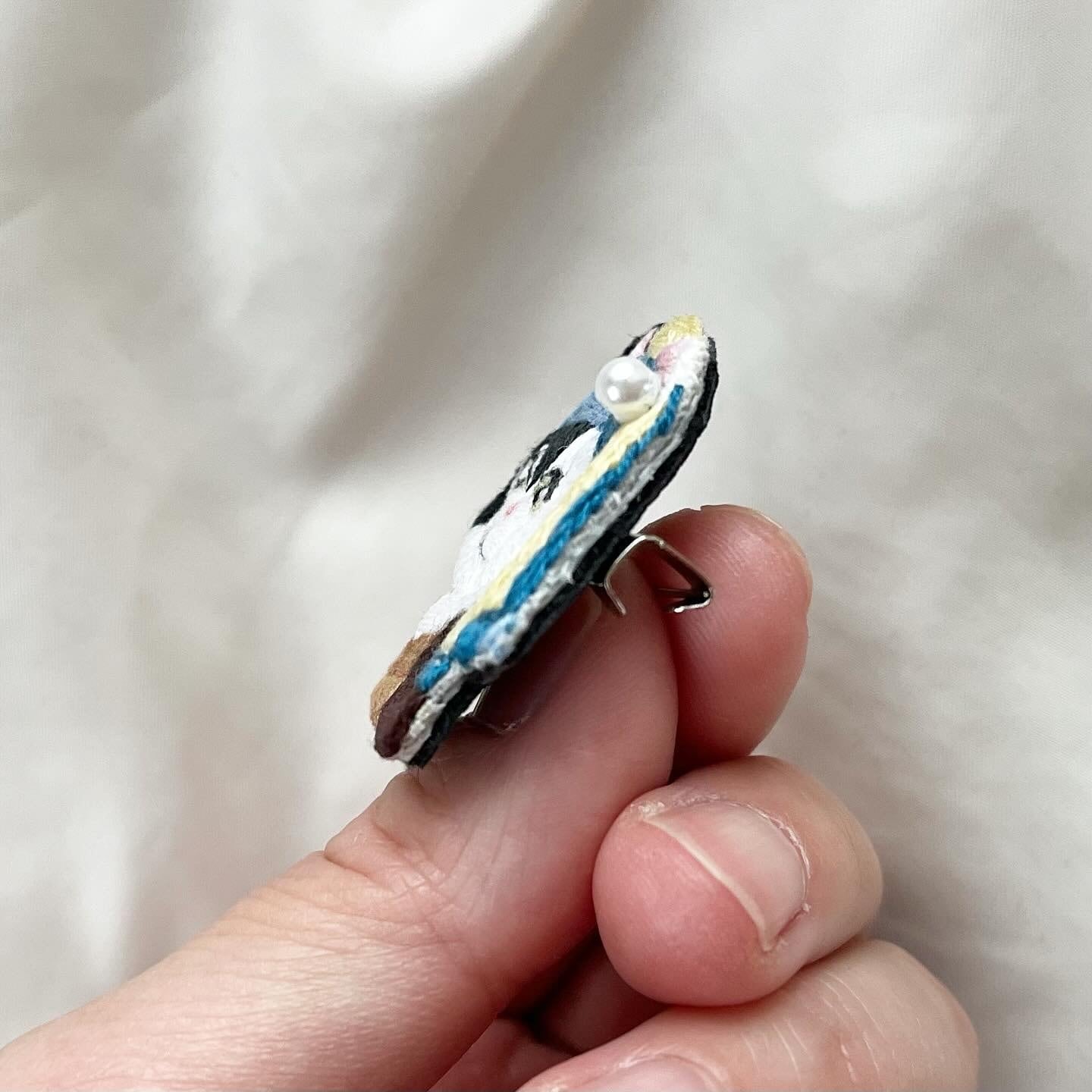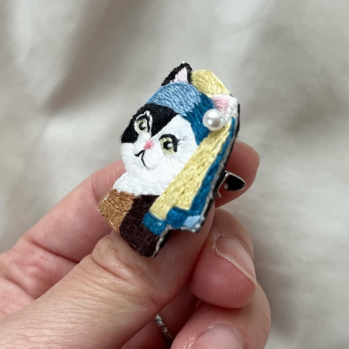 \真珠の耳飾りのニャンコ手刺繍ブローチシリーズ/