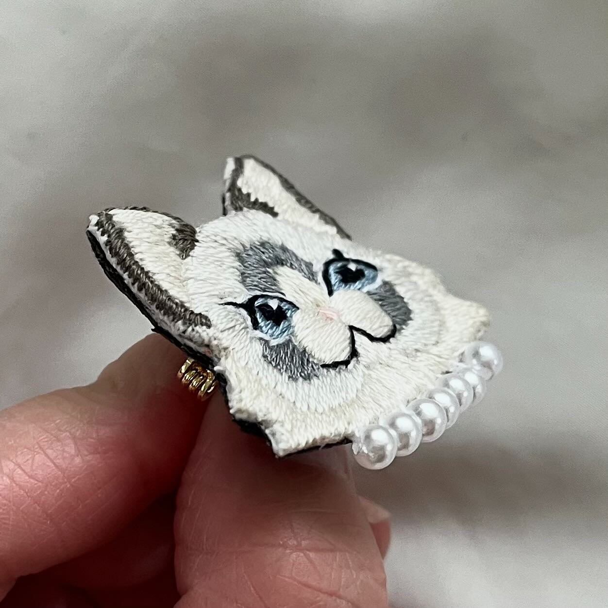 オシャレな猫ちゃん手刺繍ブローチ【ラグドールグレー】