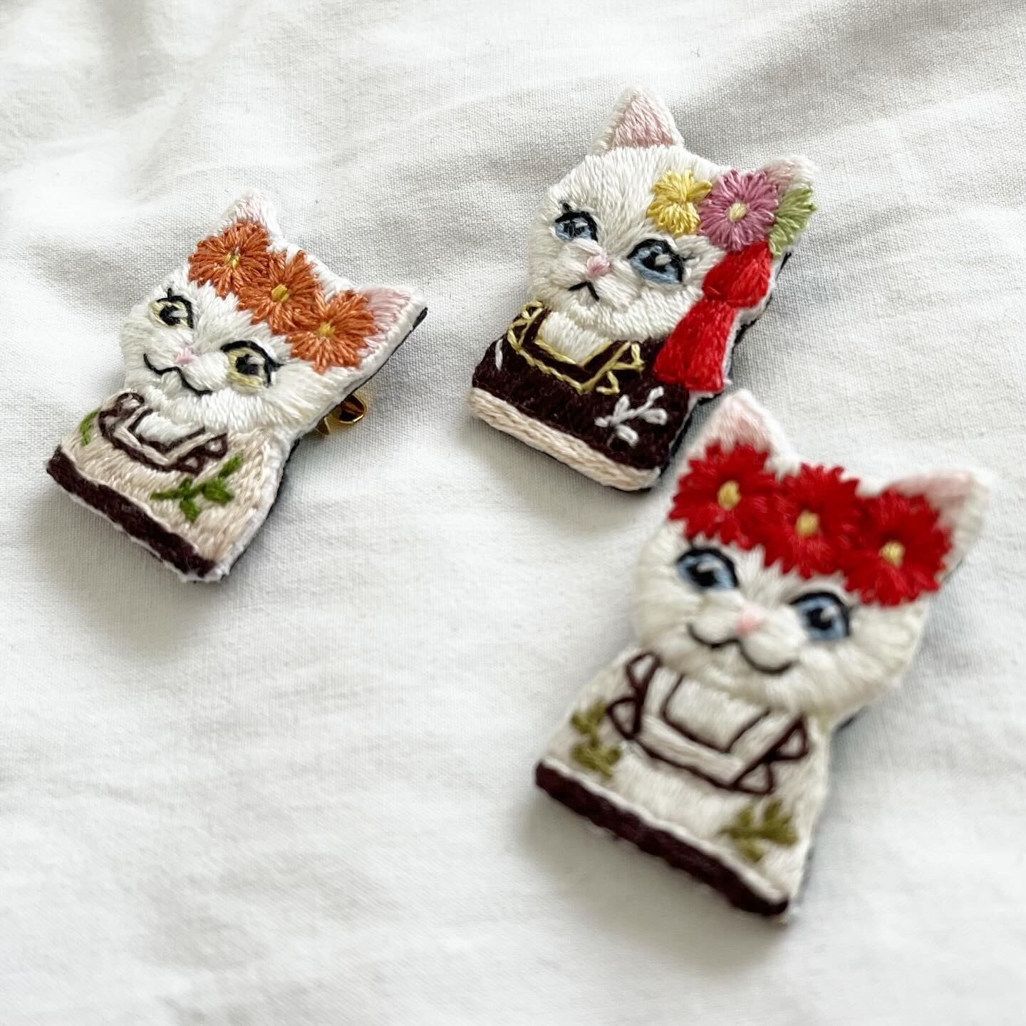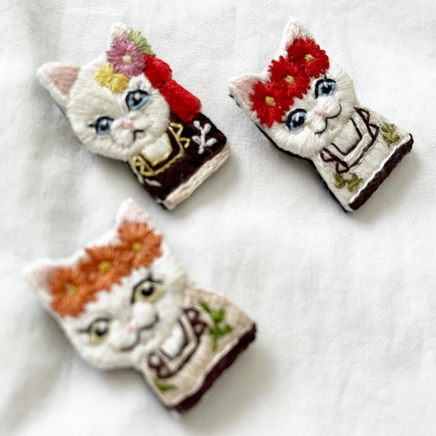 \ボタニカルな花冠猫手刺繍ブローチシリーズ/