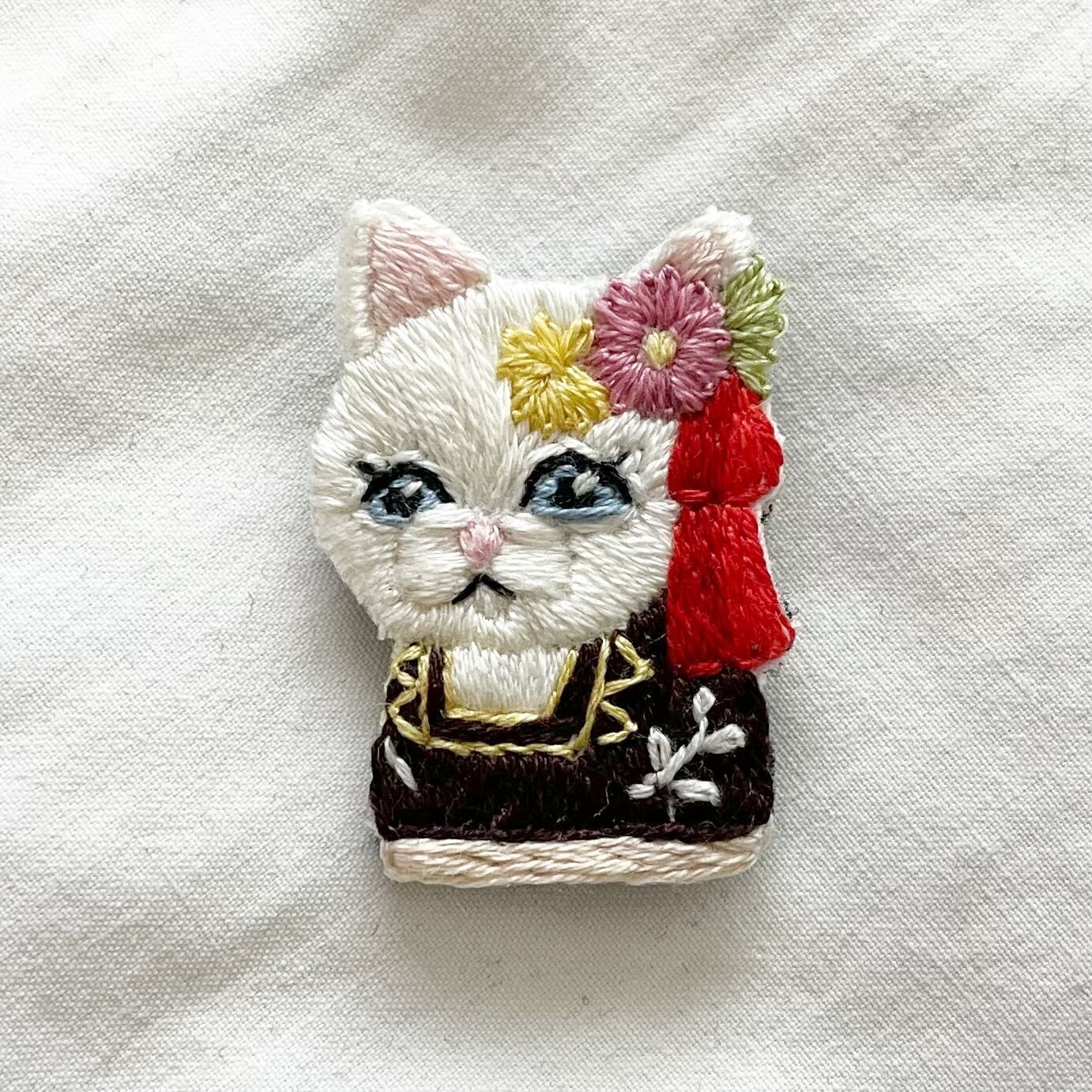 手書きのような繊細なデザインが施された可愛い猫ちゃんの手刺繍ブローチです(*ˊ˘ˋ*)