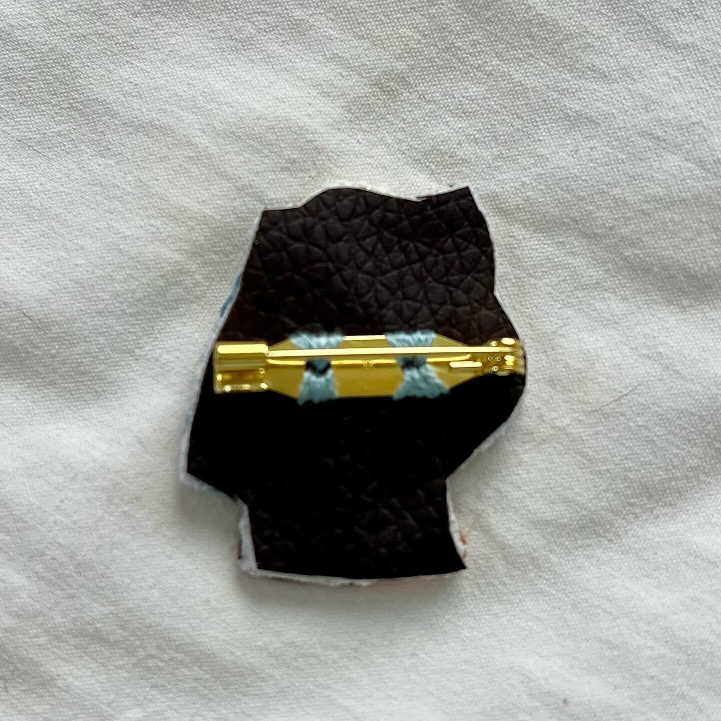素材⋯COSMO刺繍糸、20mmブローチピン、裏面は接着芯とフェイクレザー生地を重ねています。