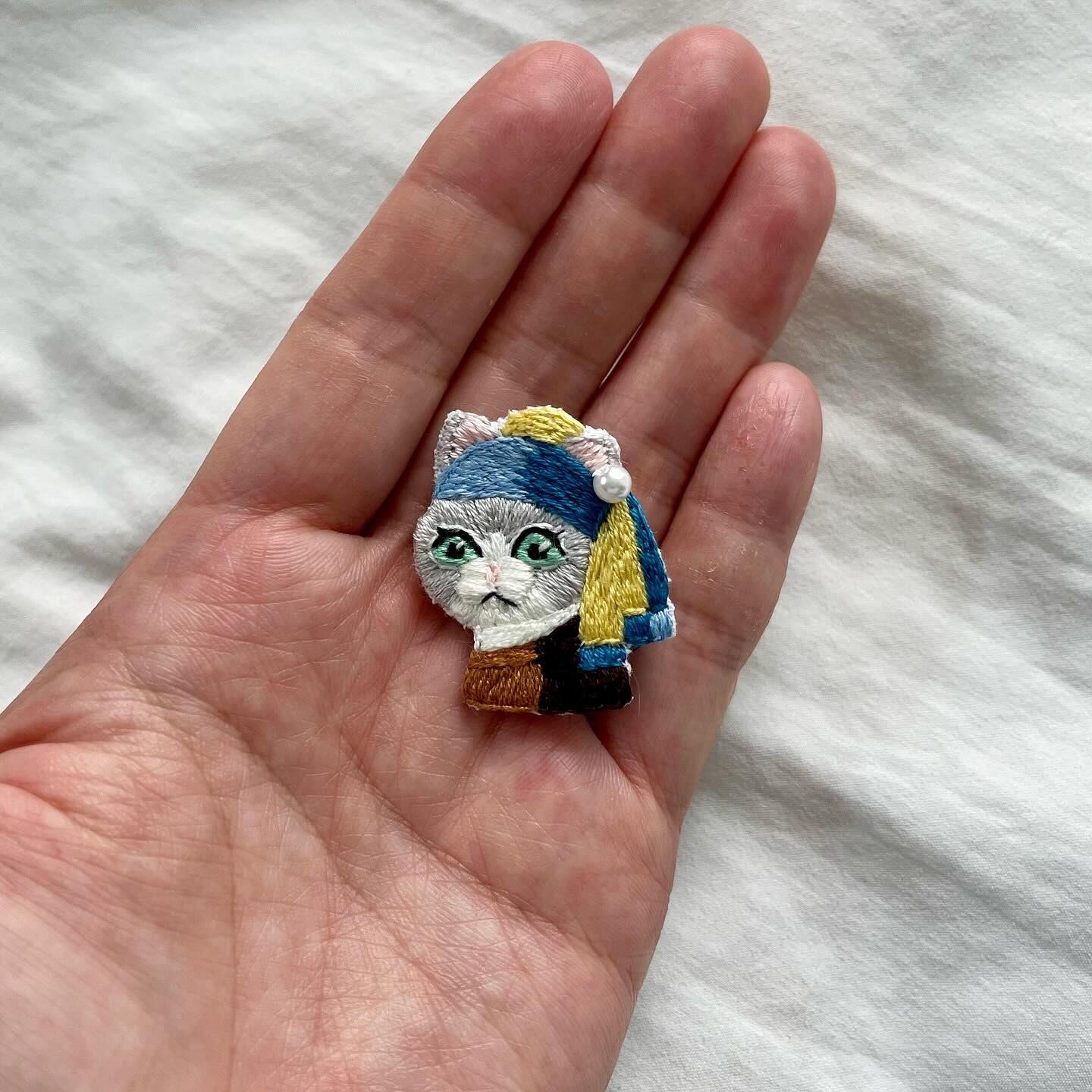 \真珠の耳飾りのニャンコ手刺繍ブローチシリーズ/