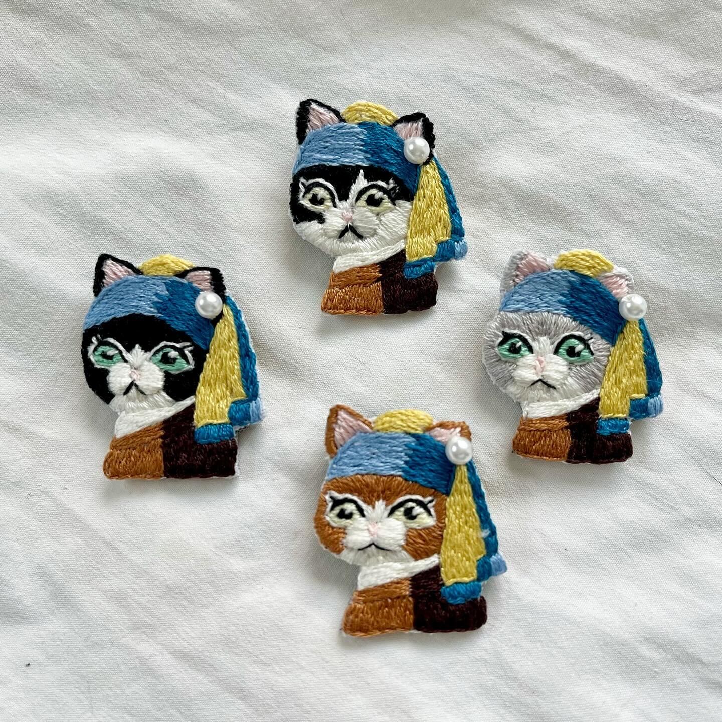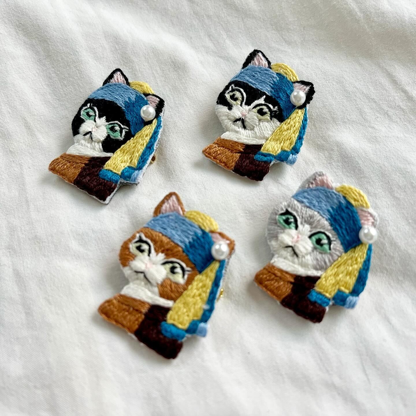 \真珠の耳飾りのニャンコ手刺繍ブローチシリーズ/