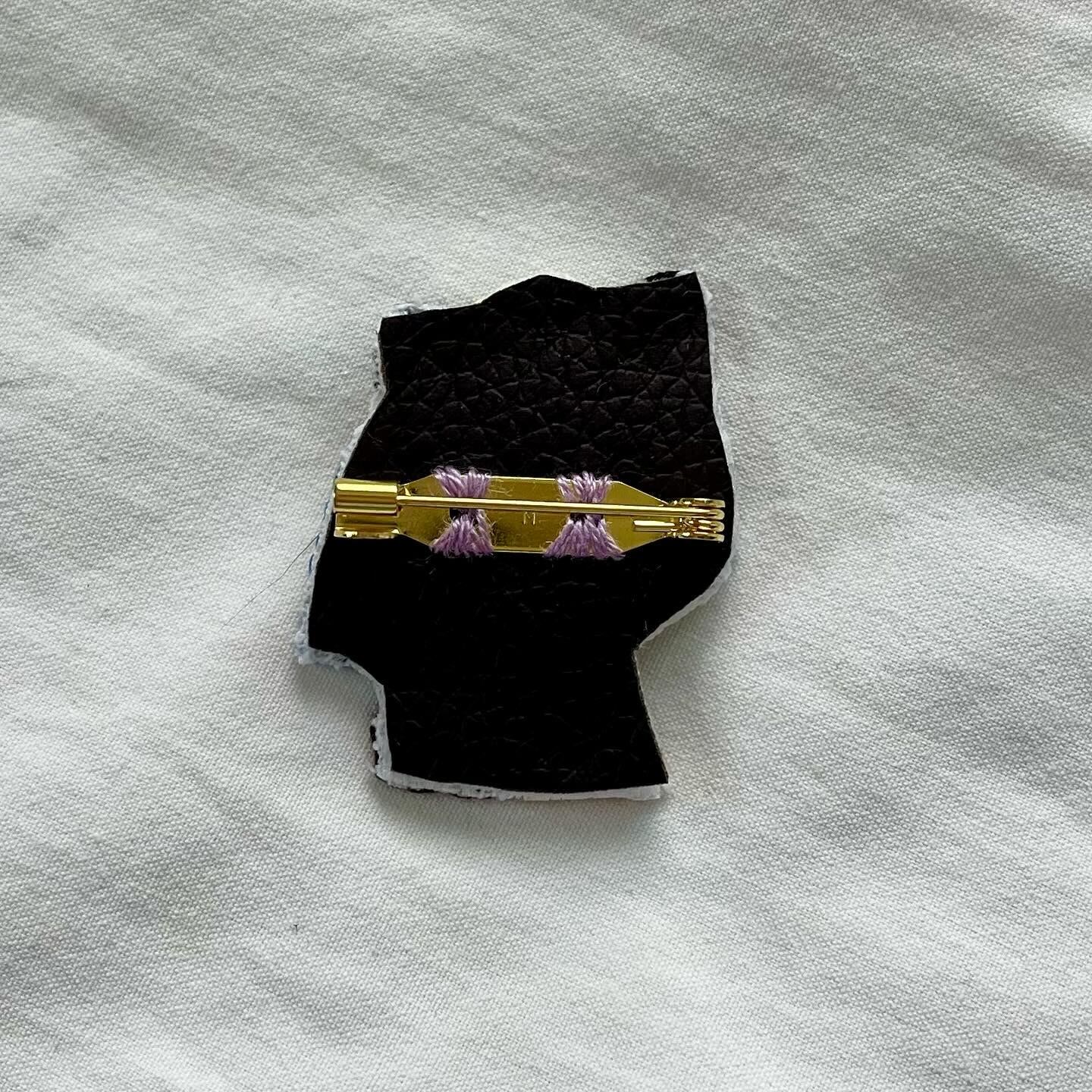 素材⋯COSMO刺繍糸、20mmブローチピン、裏面は接着芯とフェイクレザー生地を重ねています。