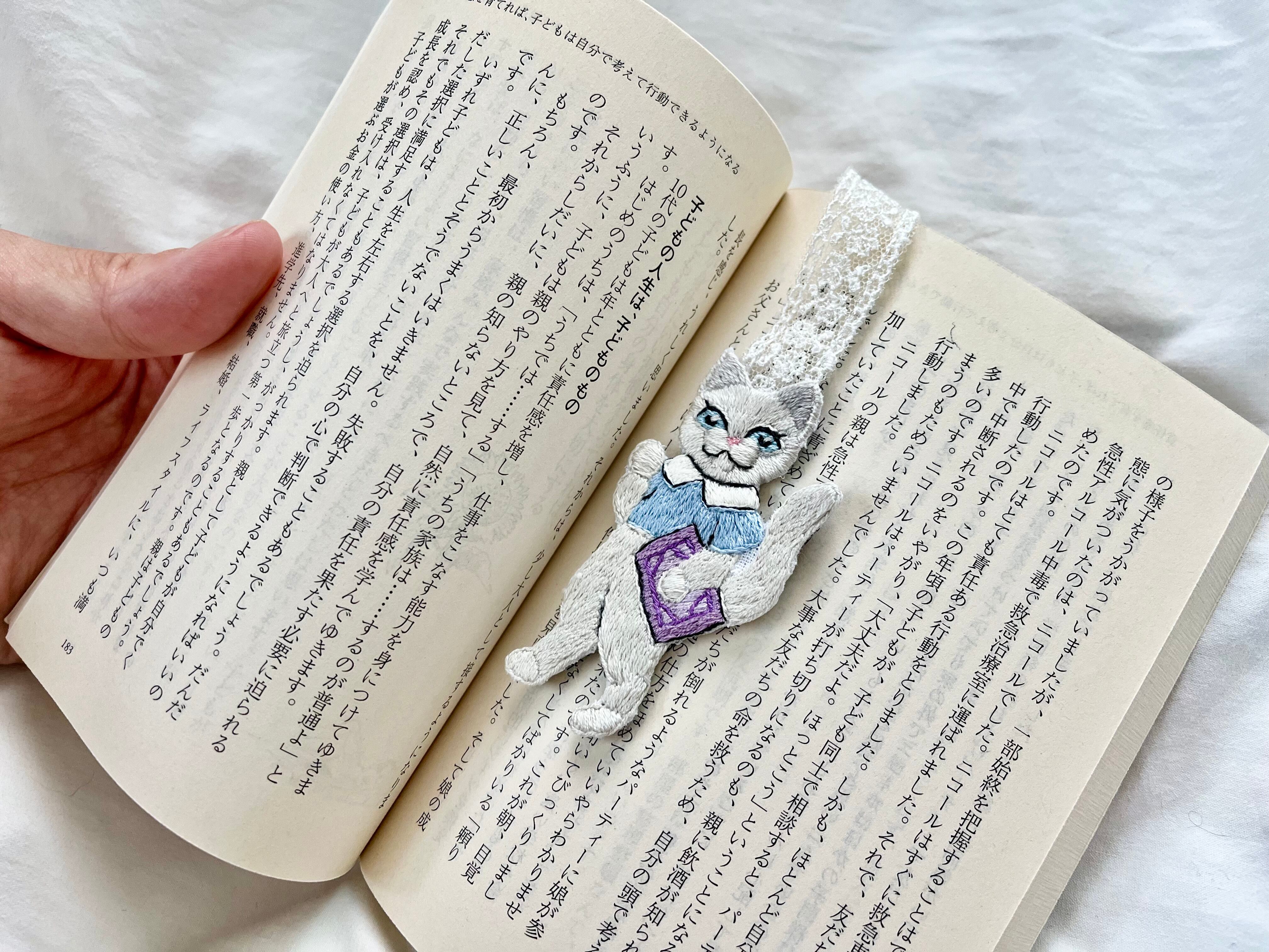 一針一針丁寧に刺繍された猫の温かみのあるデザインとなっております。