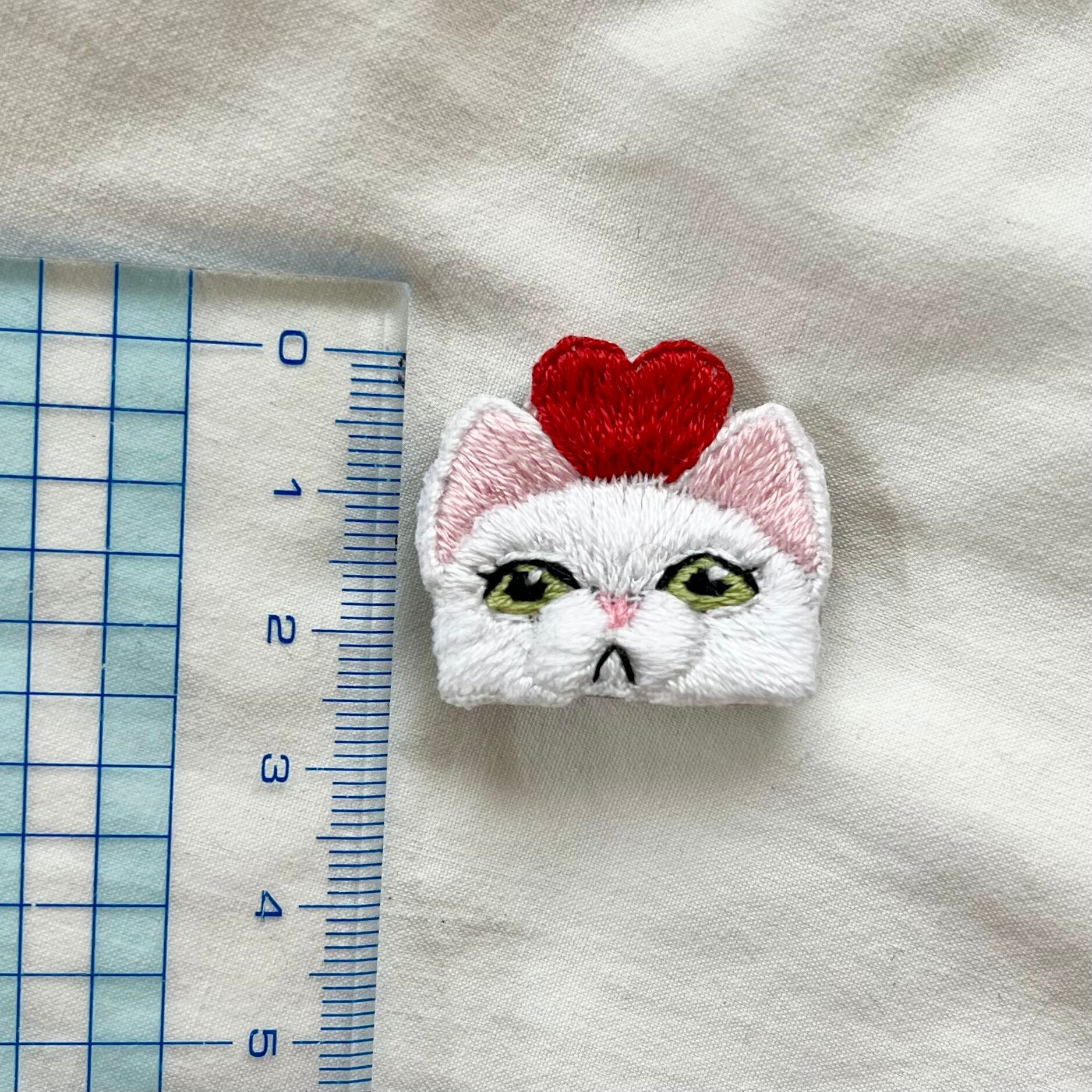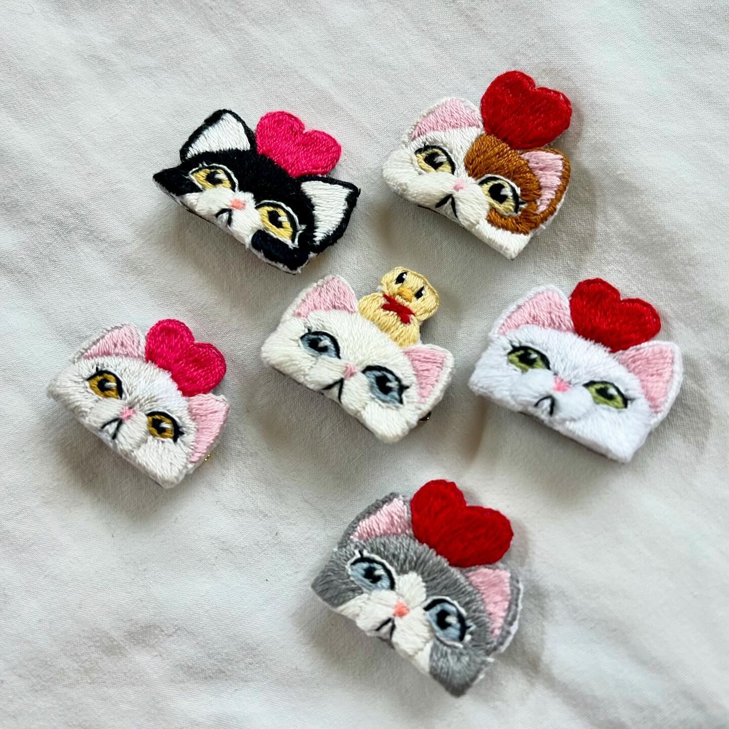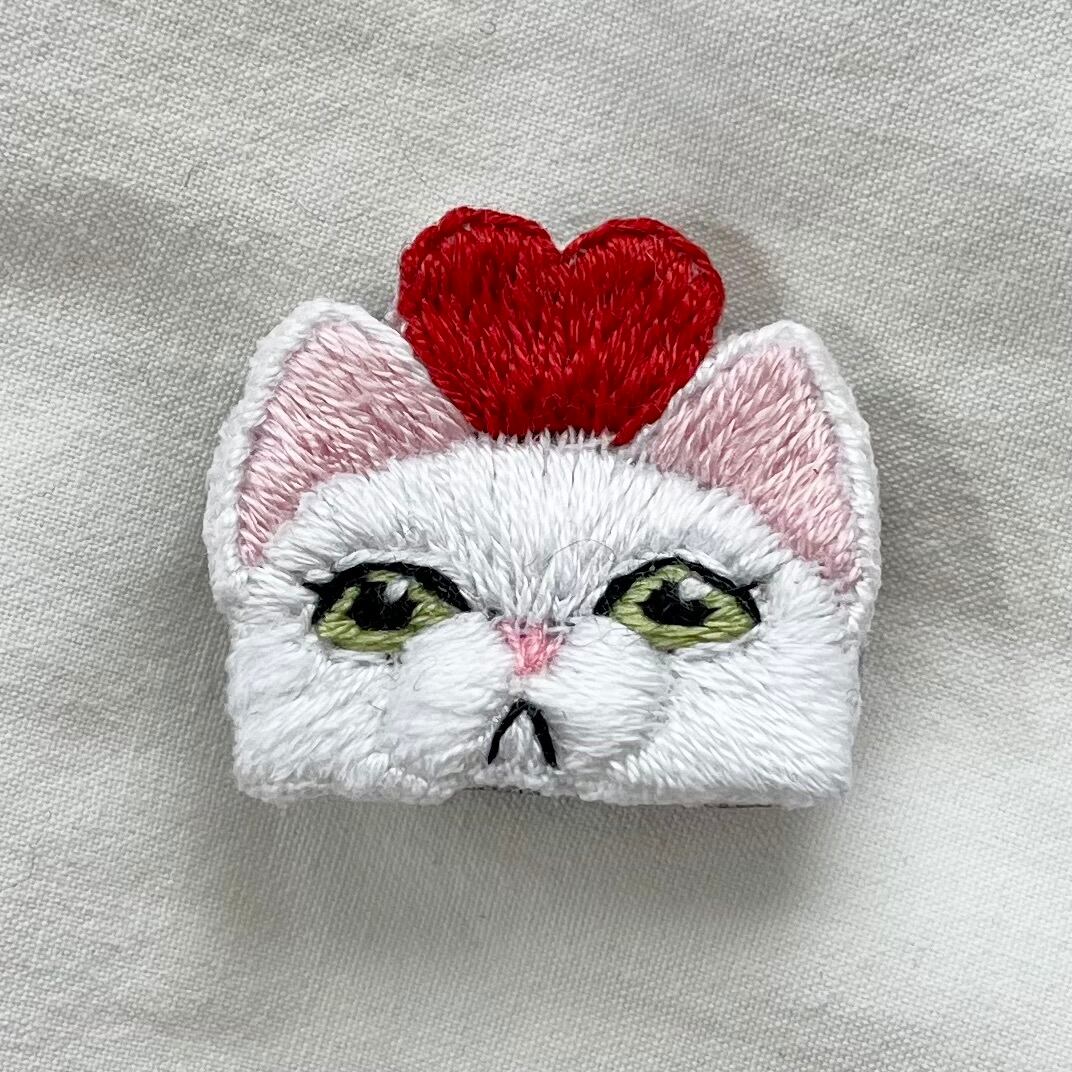 作品名「ラブリーキャット」手刺繍ブローチが完成いたしました。
