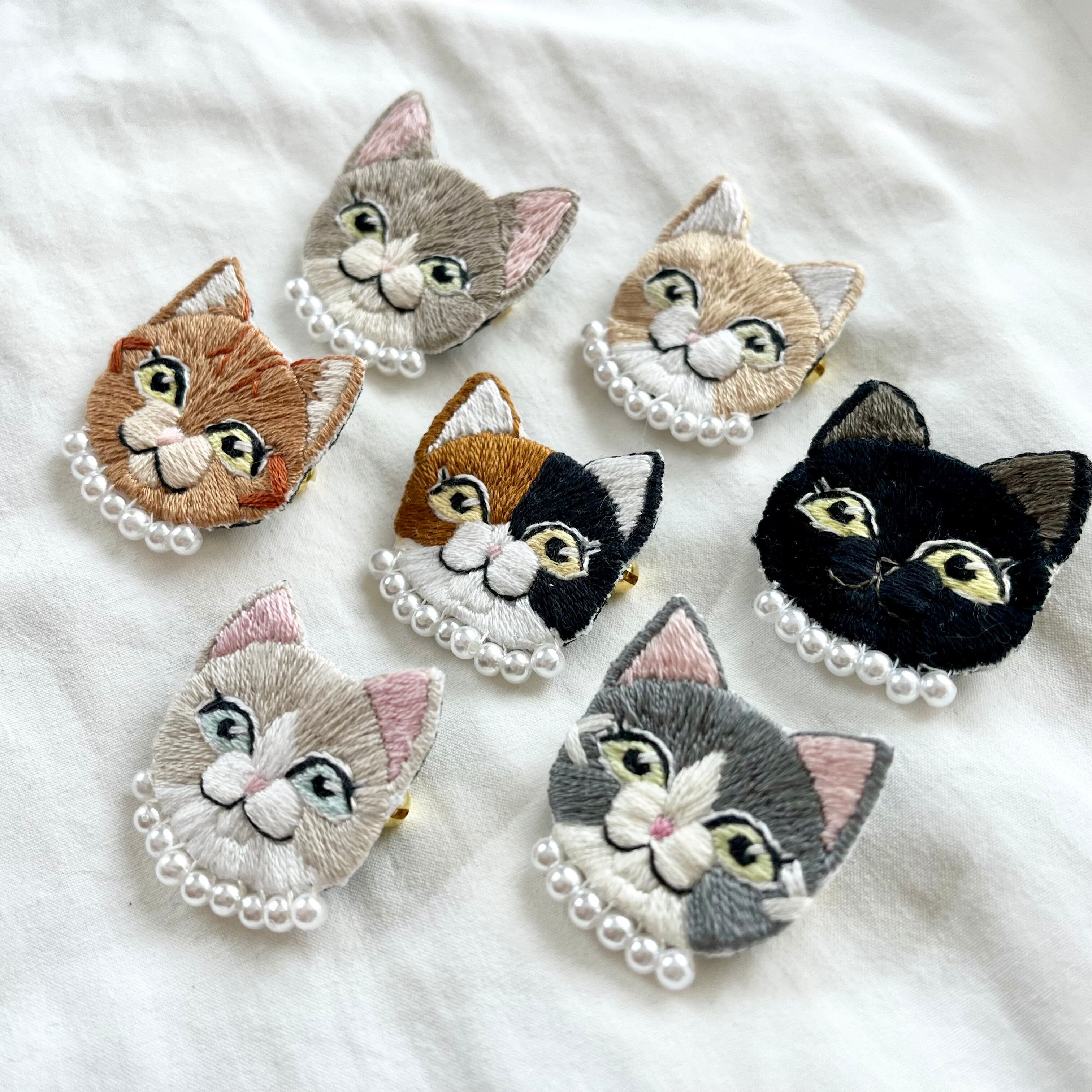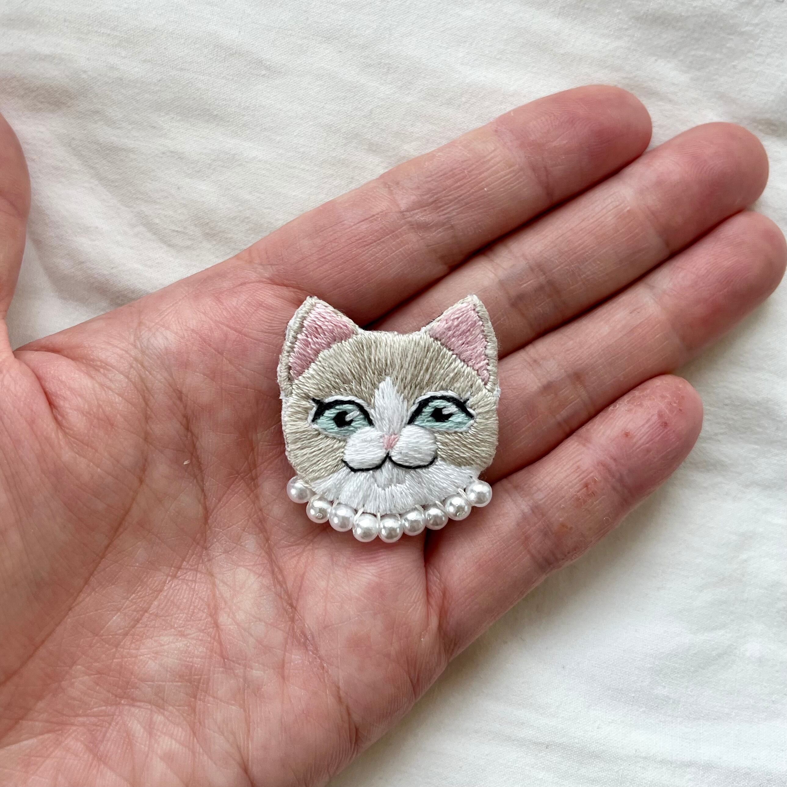 \オシャレ猫ちゃん手刺繍ブローチシリーズ/