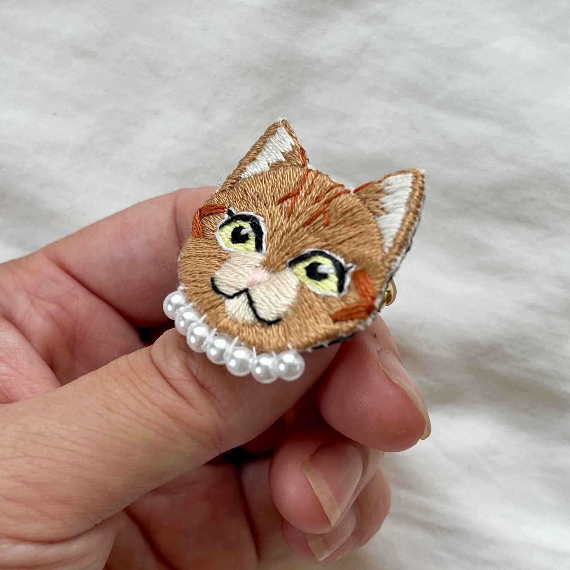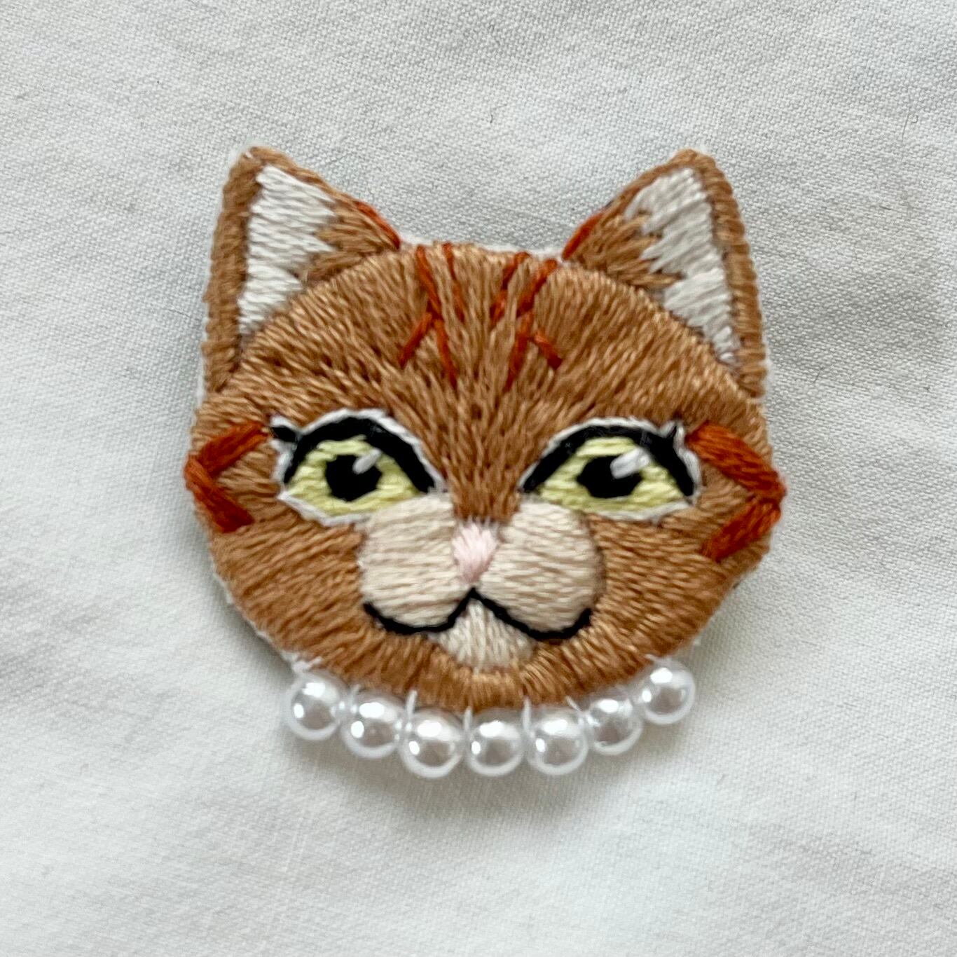 オシャレな猫ちゃん手刺繍ブローチ【茶トラ】
