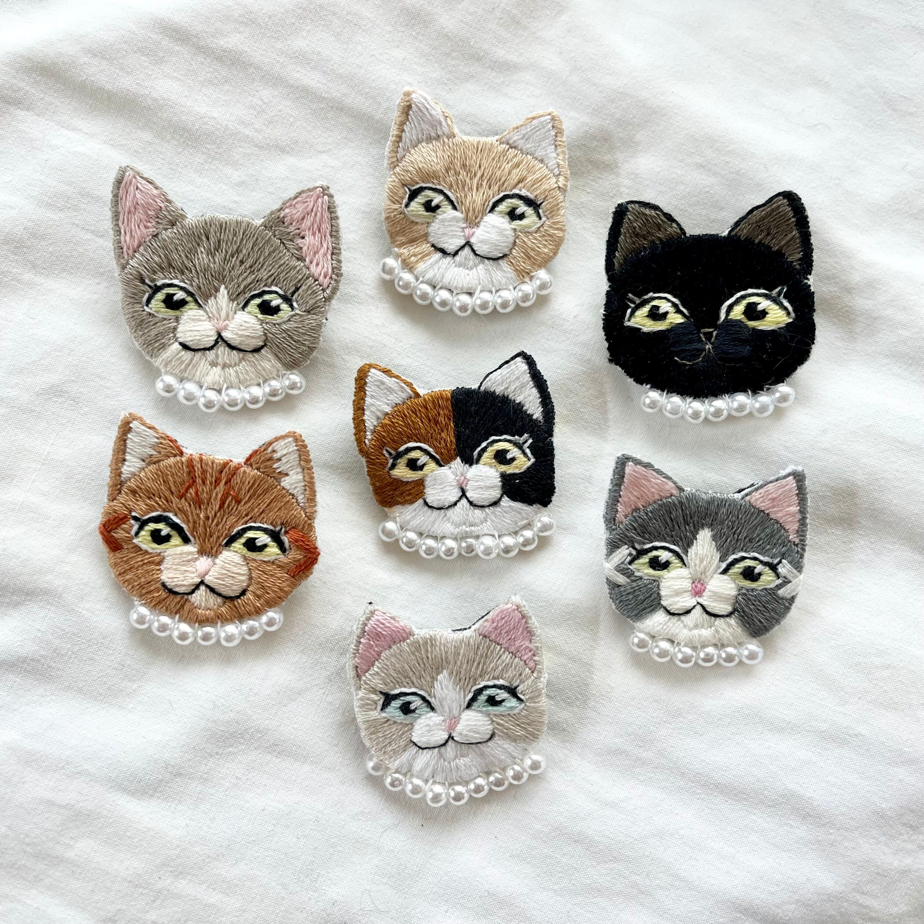 \オシャレ猫ちゃん手刺繍ブローチシリーズ/