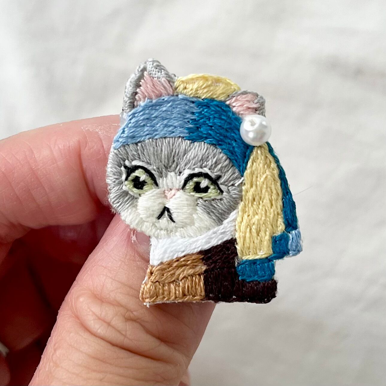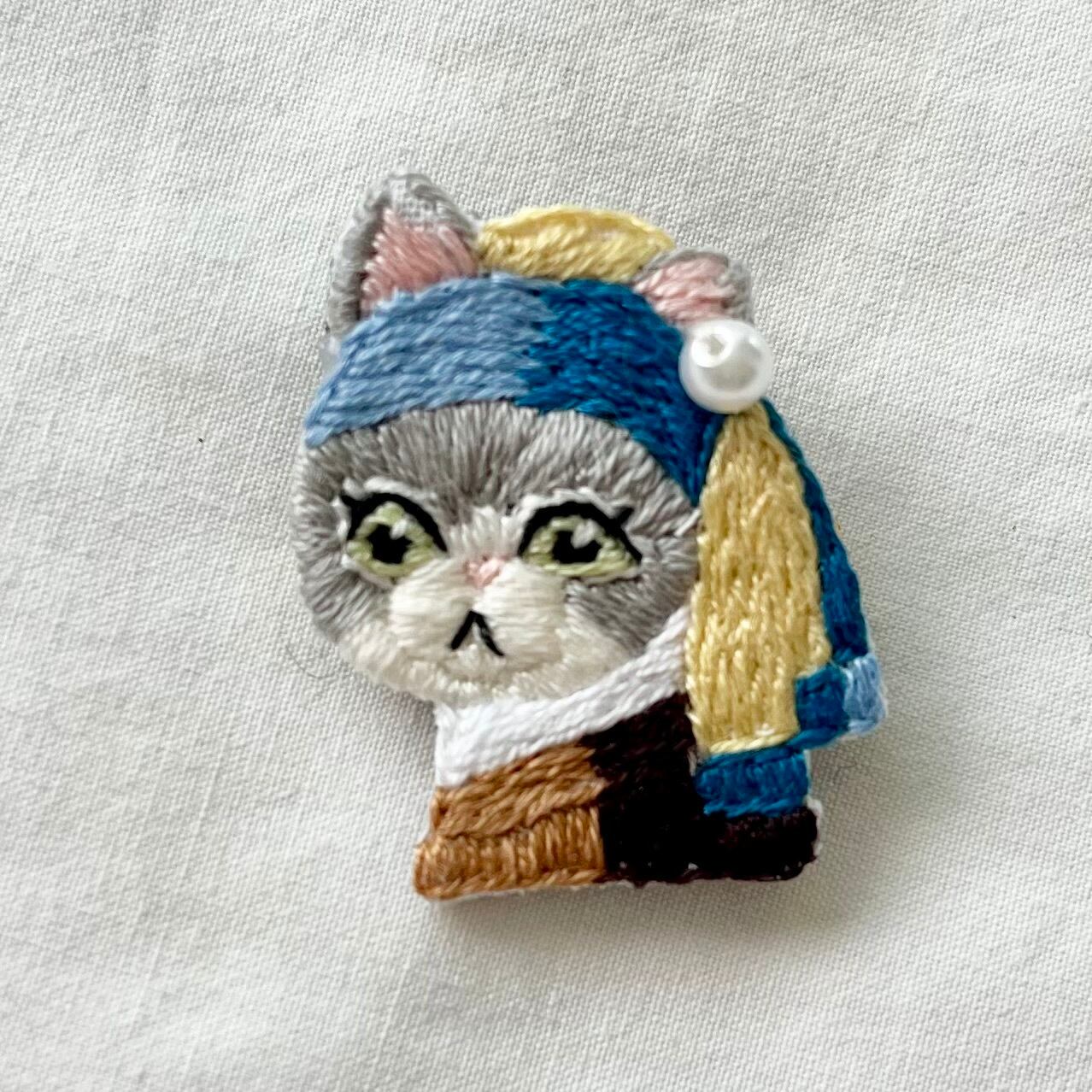 \真珠の耳飾りのニャンコ手刺繍ブローチシリーズ/