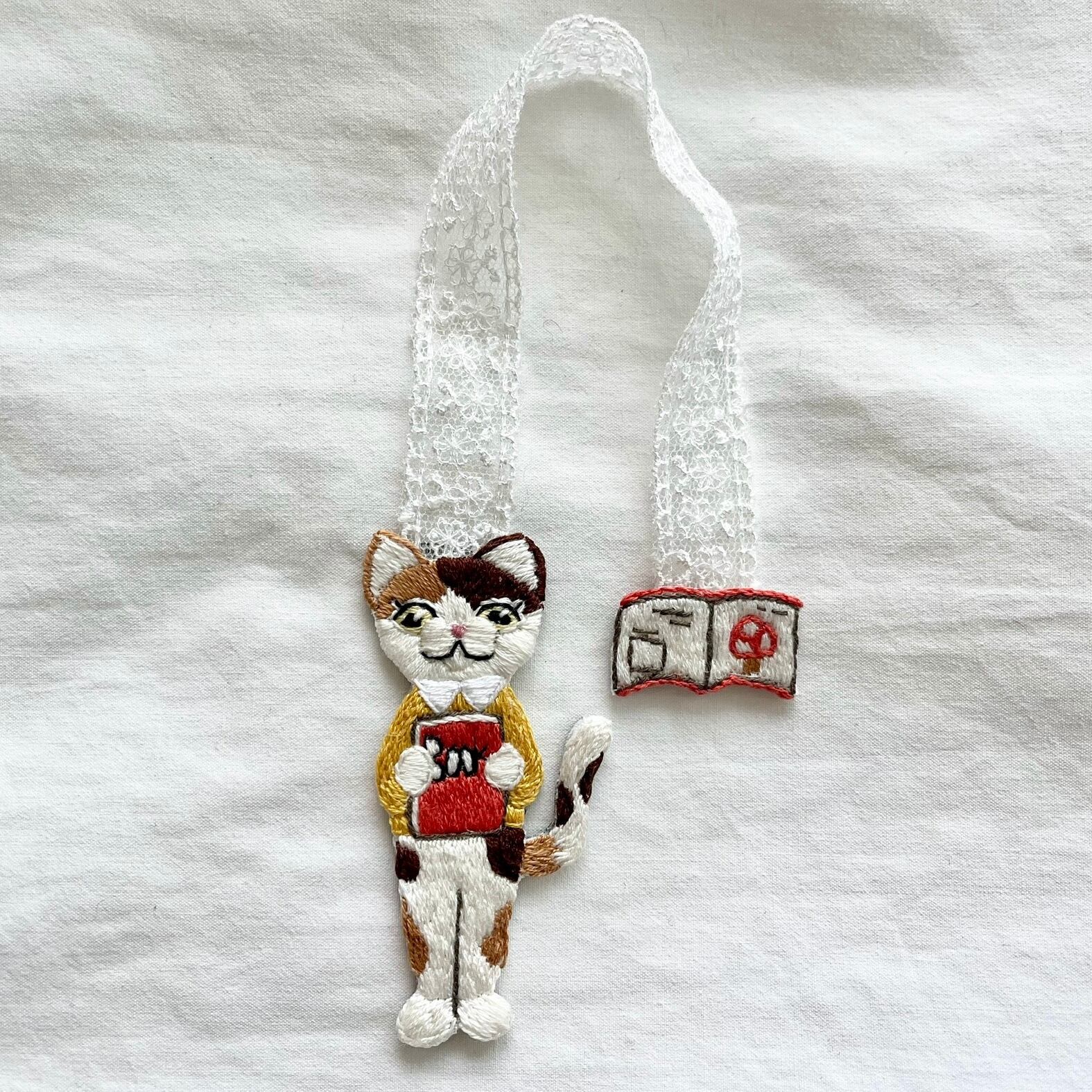 冬の読書タイムを彩る、可愛らしい猫の手刺繍ブックマークです✨