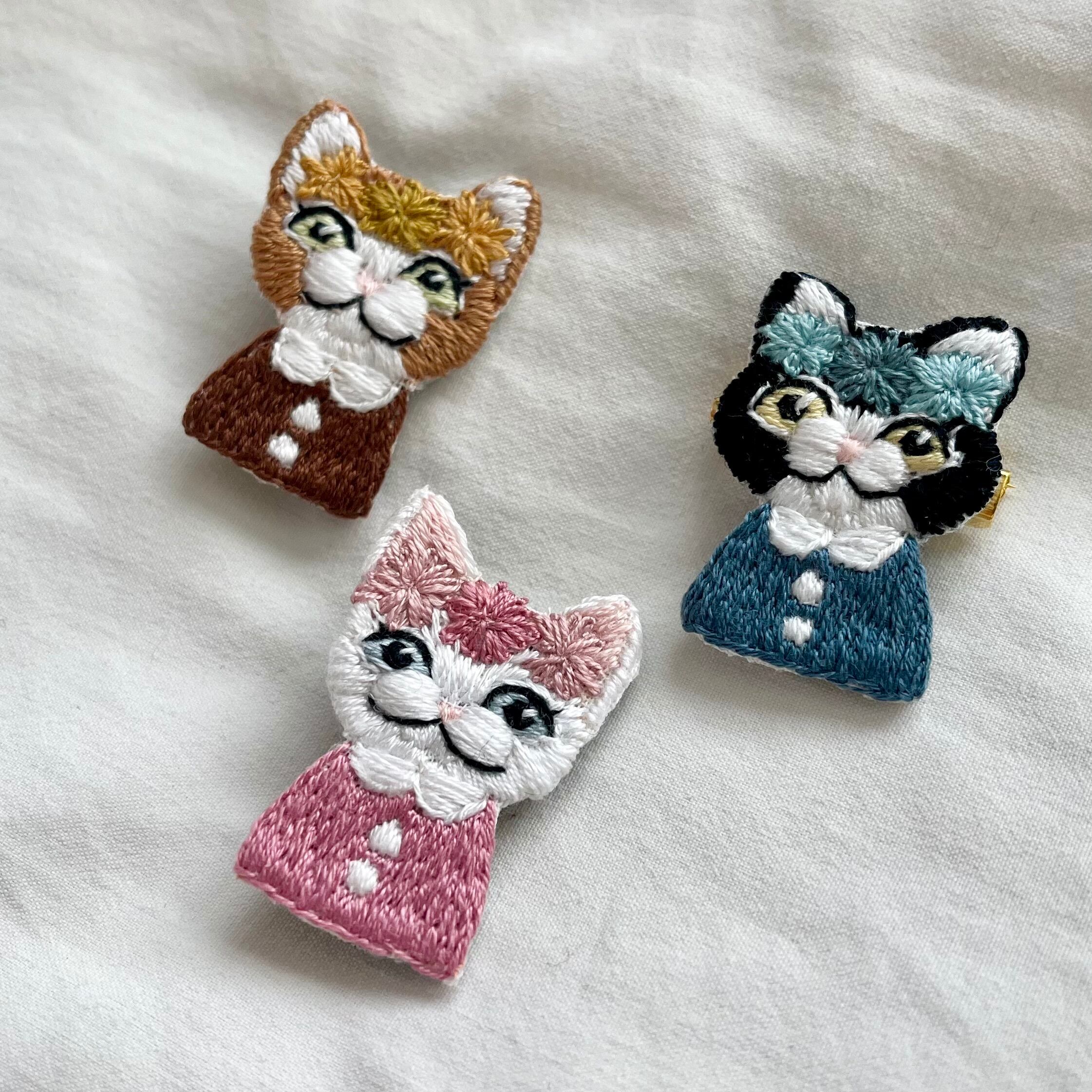 \ボタニカルな花冠猫手刺繍ブローチシリーズ/