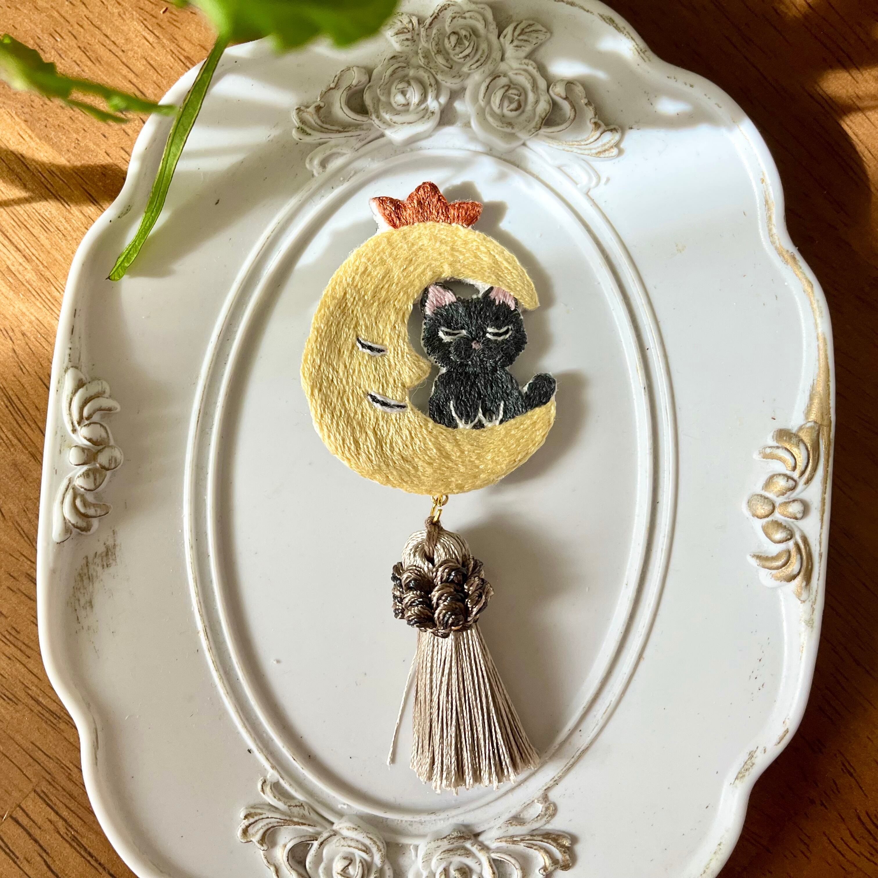 【再販オーダー|yong mei様専用】お月様と眠る猫手刺繍ブローチ | KARENTO.K